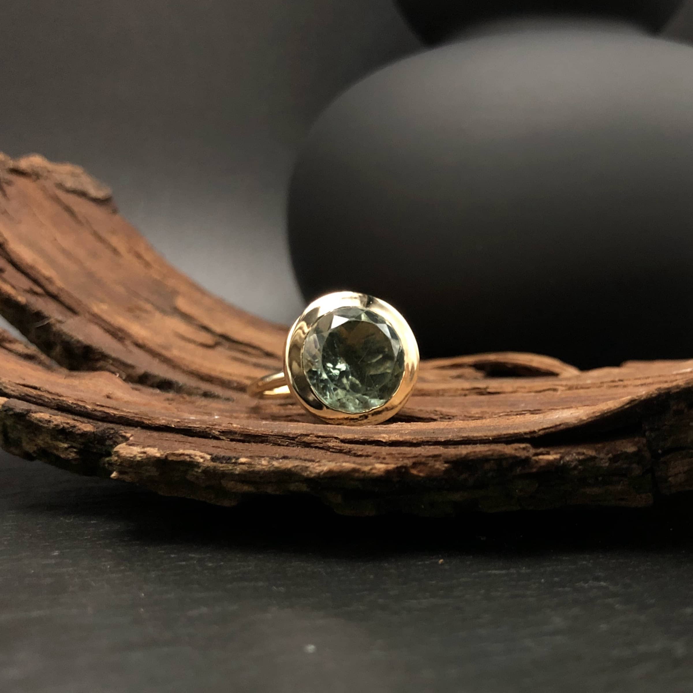“Gin Tonic” gouden ring met prasioliet