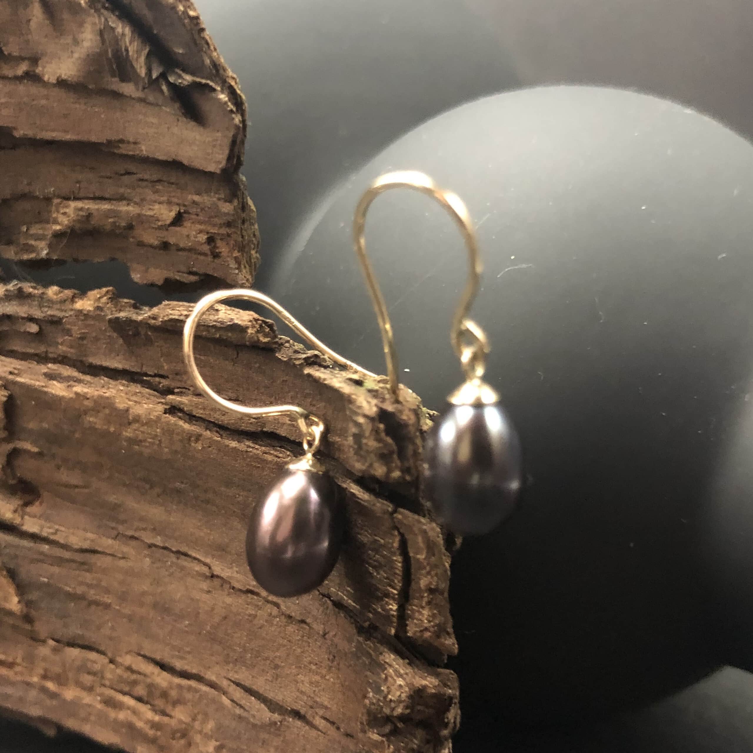 “Black pearl” 14 kt geelgouden oorbellen met zwarte parel