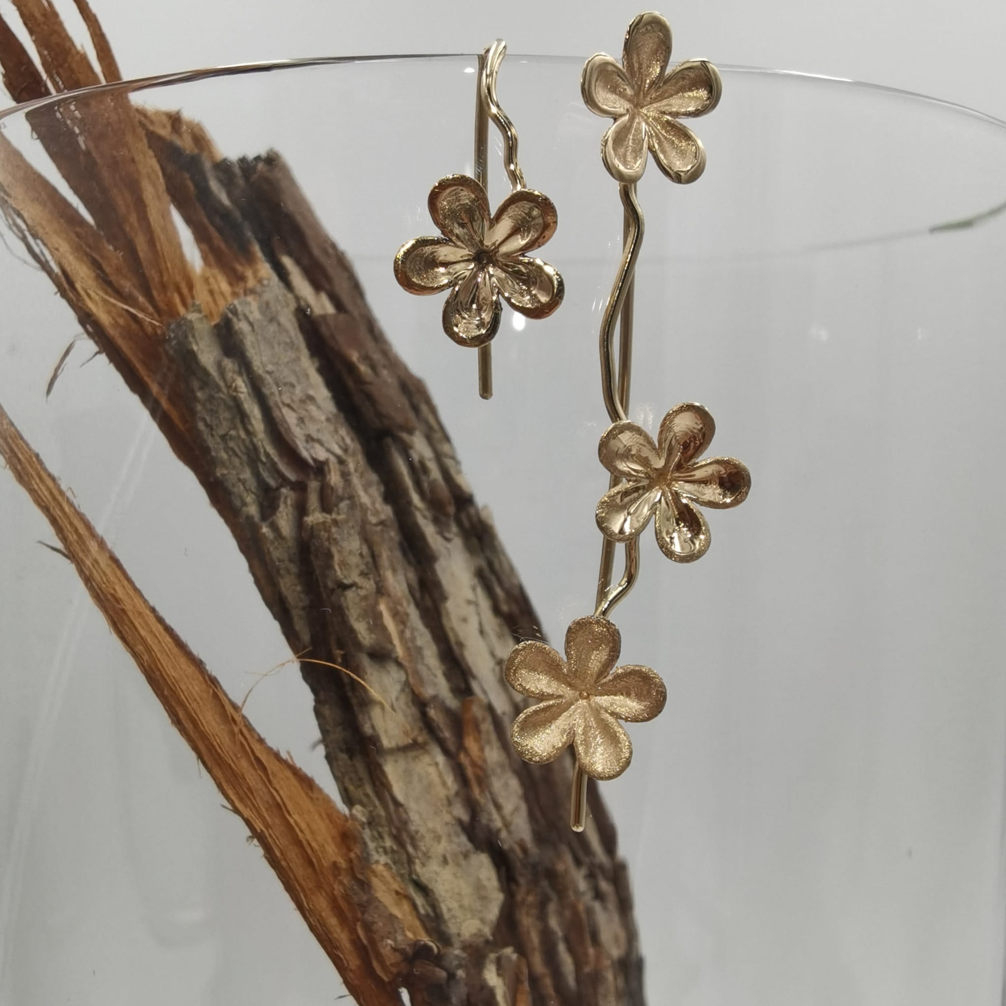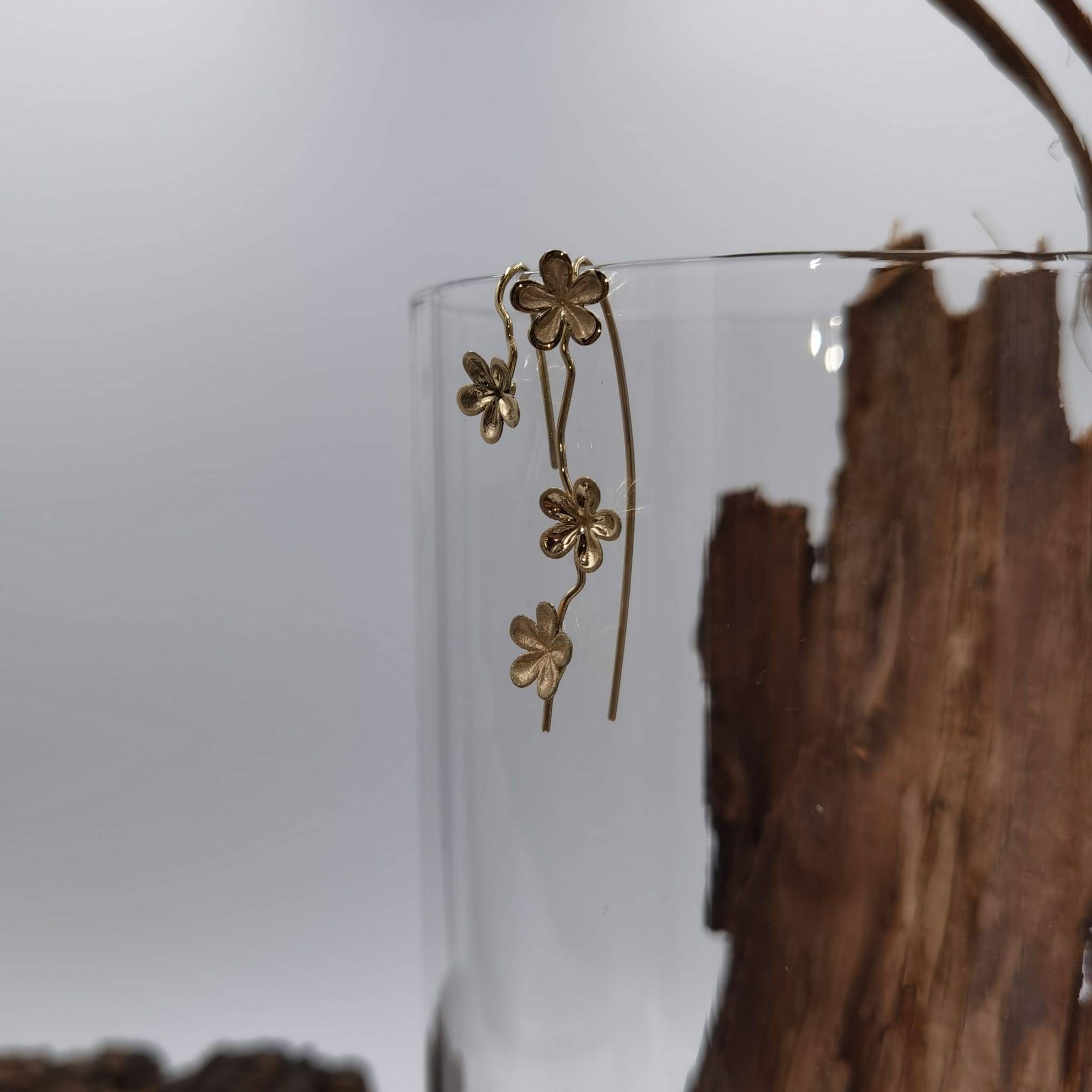 Deze gouden oorbellen hangen aan je oren zoals bloesem in een volle boom hangt. Ze zijn asymmetrisch waardoor ze lekker opvallen en als bonus zijn ze ook nog licht waardoor je ze zelf bijna niet voelt.