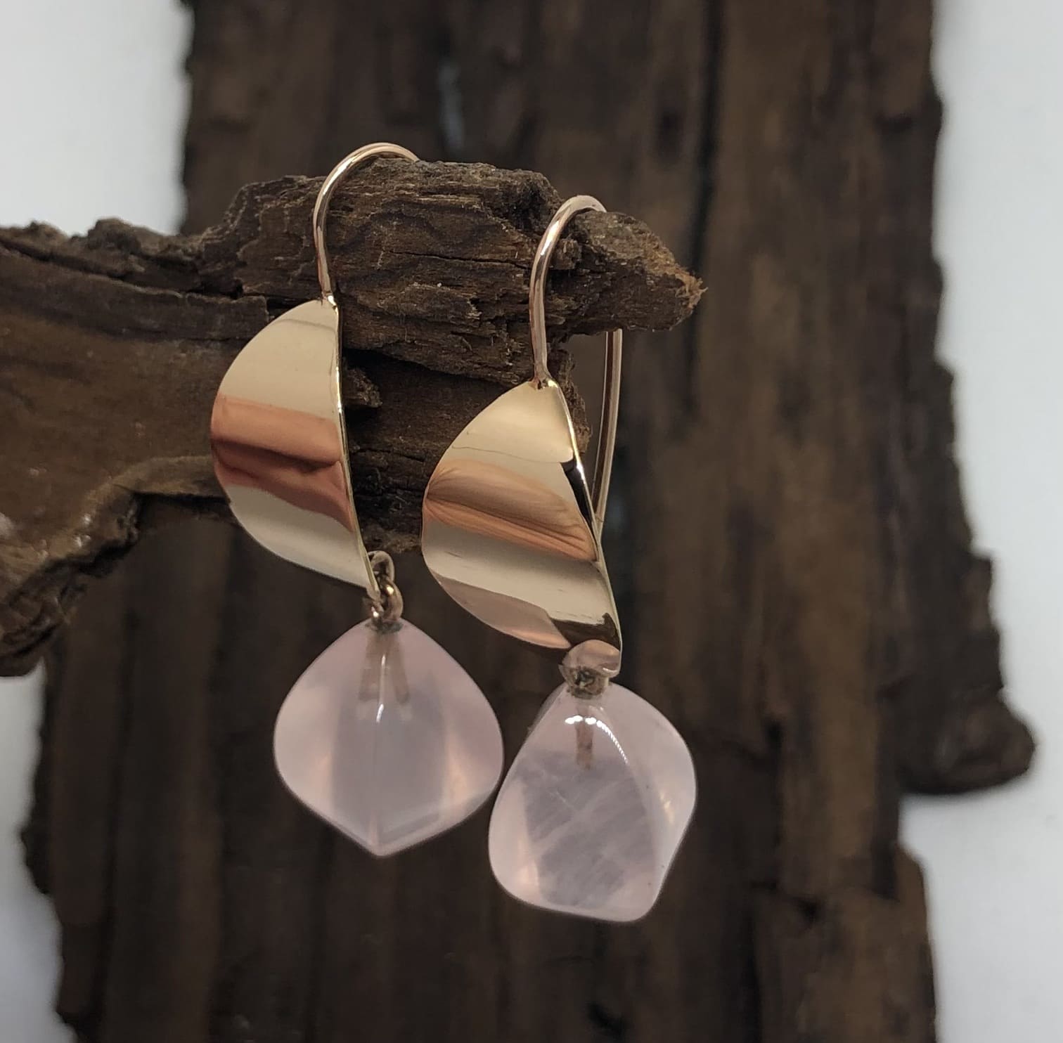 Rosé oorhangers met rozenkwarts